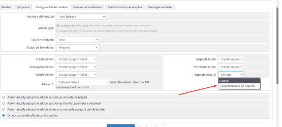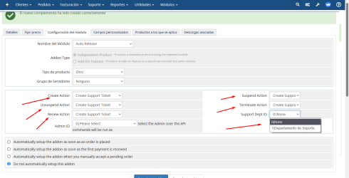 Usted puede indicar si se crean tickets cuando se realicen dichas acciones en el complemento.
