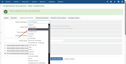 Una vez ya creado el grupo el paso siguientes elegir el tipo de producto que deseas crear en las que se encuentran, cuenta de hosting, cuenta reseller, servidores dedicaos u otros productos ya seleccionas el tipo de productos que vas a crear y pasas a asignarlo al grupo que anteriormente se creo.