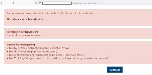 Dejo capturas de la configuración y de un error (moodle) que salta cada cierto tiempo. Espero me ayuden con la revisión del caso, lo antes posible.