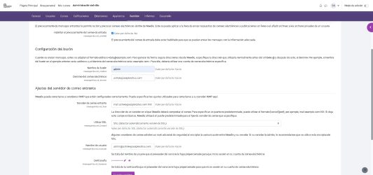 Y esta es la configuracion del correo entrante.