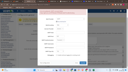 En que me tengo que basar para llenar los parametros de smtp en whmcs