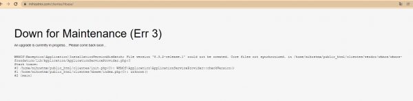 Error Down for Maintenance (Error 3) en actualización de WHMCS
