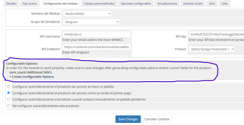 Se solicita de su ayuda, estoy teniendo dificultades al momento de crear un producto en WHMCS