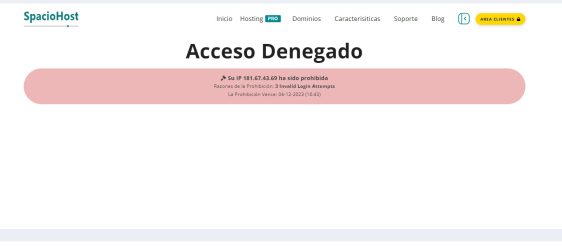 no he intentado hacer ningun acceso con ninguna contraseña. Mi cliente tampoco. No se trata de error de contraseña, pues mi cliente me avisó cuando yo estaba conduciendo. Luego, cuando intenté ingresar para ver su hosting, simplemente no pude ingresar y me aparece ese error.