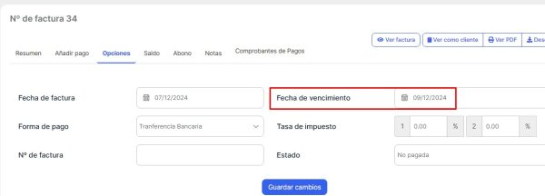 Como puedo configurar para q automaticamente poner dias para q se venza una factura?