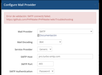 Hola buenas tardes. Estaba comprobando la configuración de envíos de correos de mi whmcs y me percaté que está generando un error al intentar conectar con el smtp. Inicialmente funcionó bien con la configuración proporcionada al activar el servicio, pero ahora esta generando error de conexión (anexo).