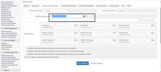 WHMCS no muestra los paquetes de WHM