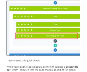 Encontre un script en un tutorial que deberia colocarse en el modulo de Integracion de DIVI (lo hice pero no funciona) y ese mismo script aparece en el tutorial “oficial” del plugin pero alli se indica que se debe incluir en la linea Code: Popup CSS y JS en la seccion misma del popup pero no encuentro esa linea… (adjunto pantalla). El script es: